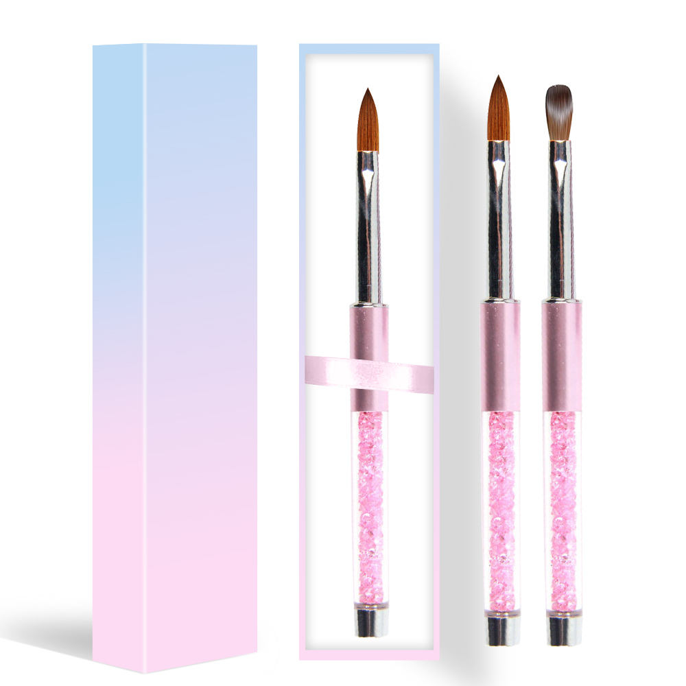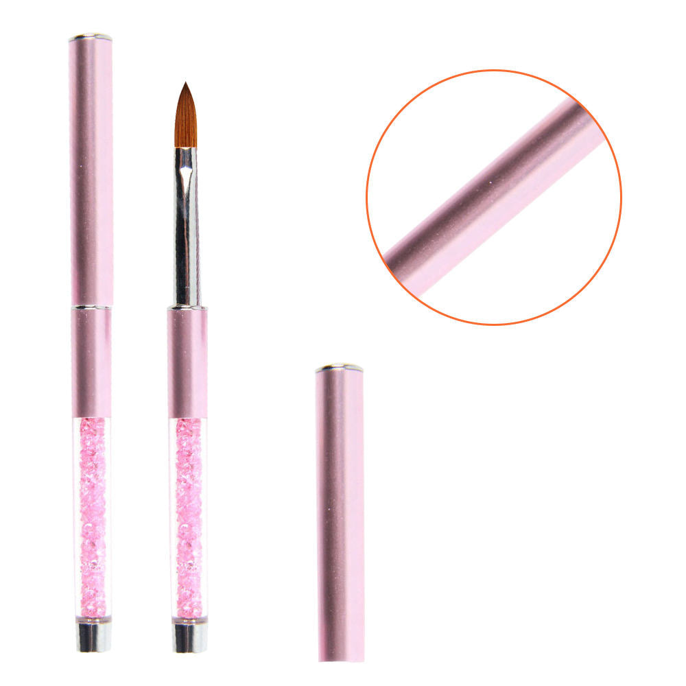 BQAN 2#-24# Size Pure 100% Kolinsky High Quality Acrylic Brush Pink Metal With Transparent Rhinestone Acrylic Handle Nail Brush Acrylic Art