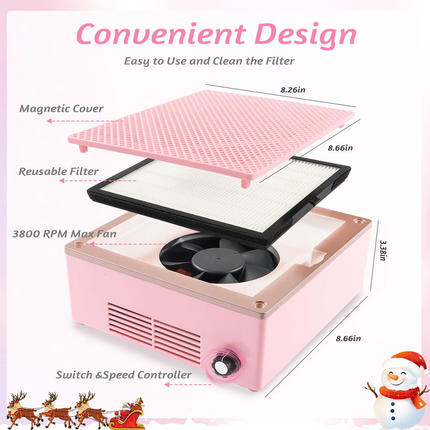 【Efficient Heat Dissipation】Features a unique bottom heat dissipation design, nail dust fan collector ensures optimal performance and prolonged lifespan. This innovative feature prevents the unit's accumulation from heat, preventing overheating and keeping the surface cool to the touch. Say goodbye to overheating concerns and enjoy a reliable and safe nail dust collector.