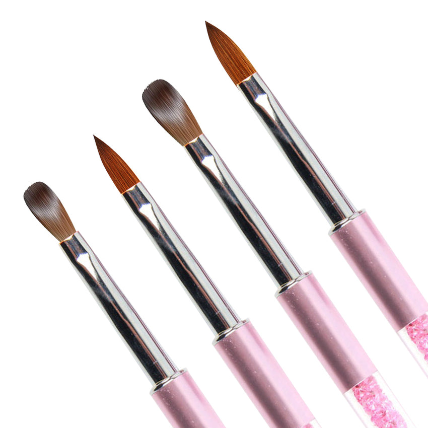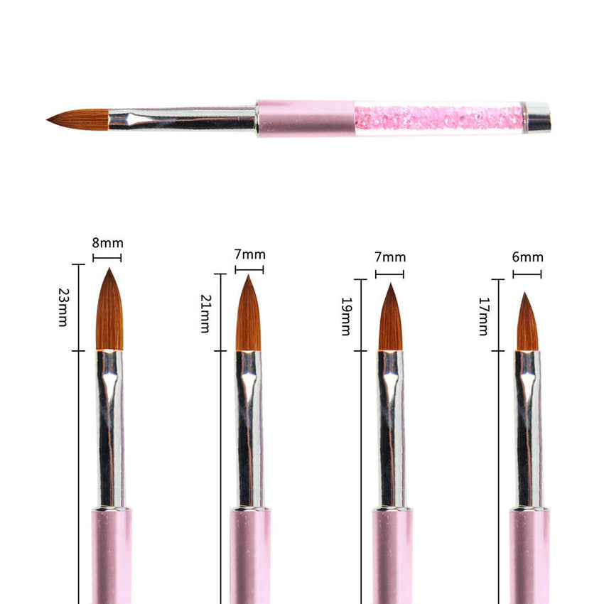 BQAN 2#-24# Size Pure 100% Kolinsky High Quality Acrylic Brush Pink Metal With Transparent Rhinestone Acrylic Handle Nail Brush Acrylic Art