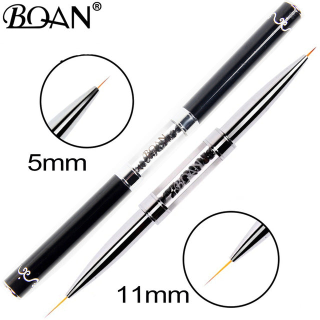 BQAN Black Double Head Crystal Handle 5mm&7mm&11mm&13mm&15mm Drawing Brush Liner Brush Painting Pen Gel Polish Crystal Nail Art Manicure Tools